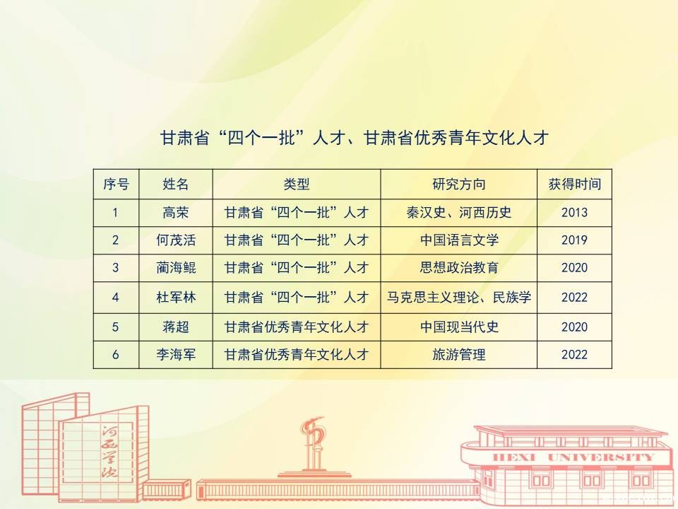 甘肃省“四个一批”人才、甘肃省优秀青年文化人才