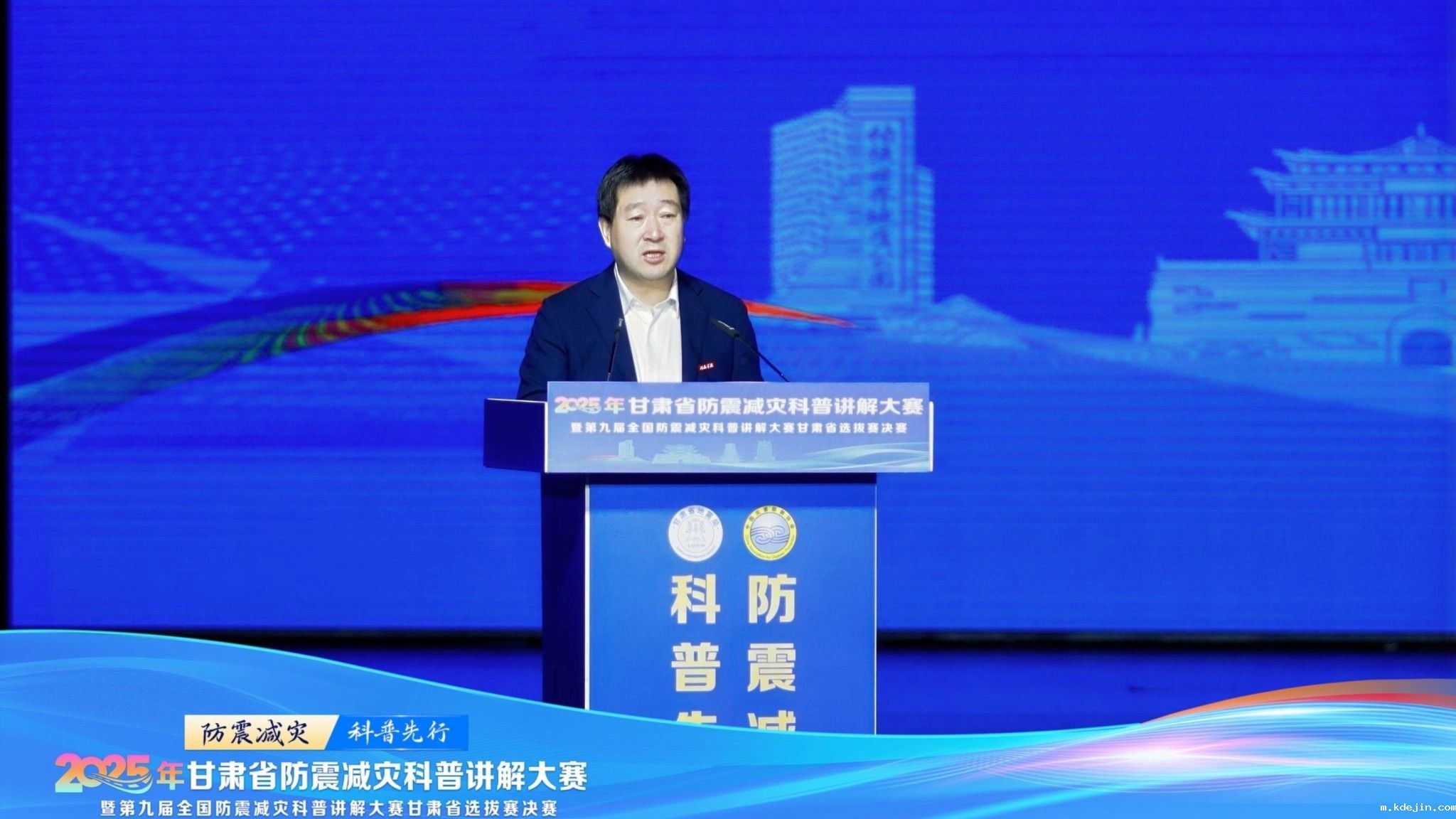 李广致辞指出,全省防震减灾科普讲解大赛在我校的举办,既是一场知识与智慧交融的科普盛宴,也是一场关于生命与责任的情感碰撞,更是万千河西学子感知防震减灾的生动课堂。学校将以此次全省防震减灾科普讲解大赛在我校的举办为契机,大力弘扬科学精神,积极组织动员全校师生更加广泛参与防震减灾科普教育,提高防震减灾意识,提升防震减灾科学素质,构建全覆盖工作体系,在全校范围内形成"人人关注防灾、人人参与减灾"的良好氛围;学校将主动承担社会责任,进一步激发青年学子参与公共安全建设的责任感和使命感,争做防震减灾知识的传播者,为提升全社会防灾减灾能力贡献高校智慧。