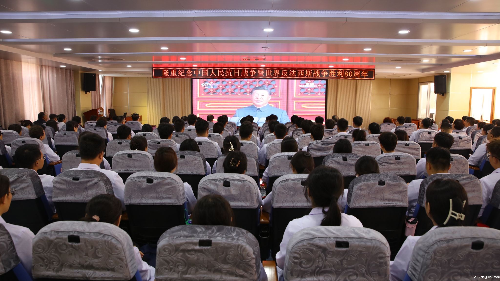 9月3日上午,纪念中国人民抗日战争暨世界反法西斯战争胜利80周年大会在北京隆重举行。中共中央总书记、国家主席、中央军委主席习近平发表重要讲话并检阅部队。我校师生以饱满的热情,通过多种形式收听收看直播盛况,共同铭记历史、缅怀先烈、珍爱和平、开创未来。