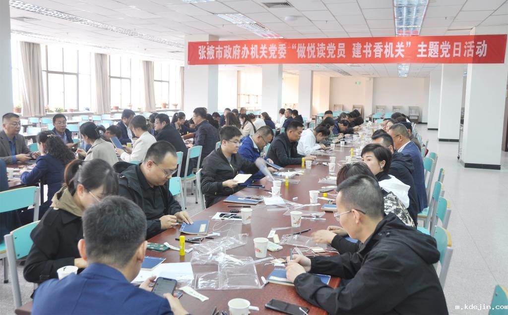 为深化学习贯彻习近平新时代中国特色社会主义思想主题教育,推进落实“三抓三促”行动走深走实。5月5日上午,张掖市政府办机关党委与我校图书馆党总支共同开展“做悦读党员 建书香机关”主题党日活动。市政府办机关党委全体党员,图书馆党总支部分党员共110余名党员参加了本次活动。