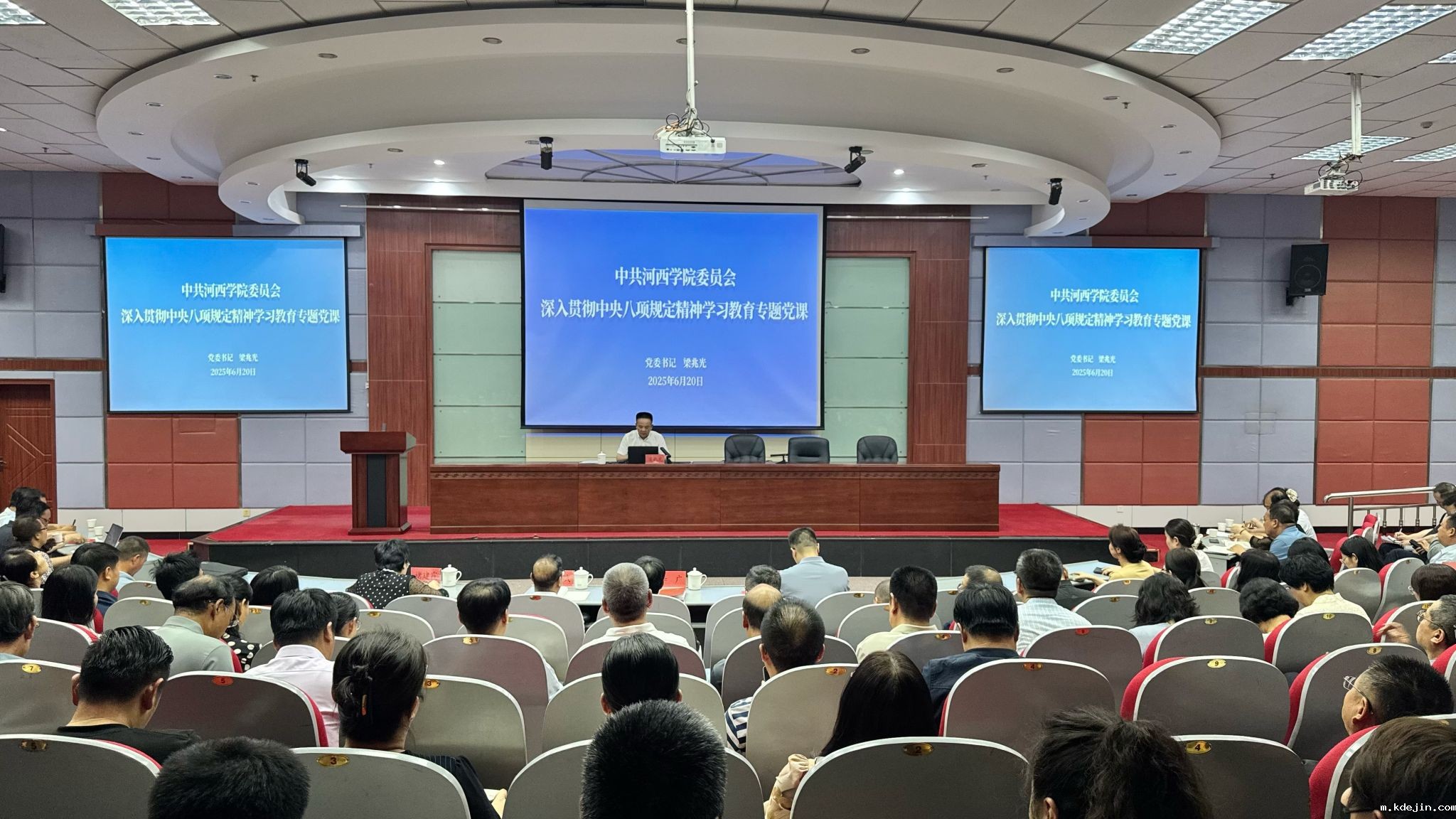 6月20日下午,党委书记梁兆光以《锲而不舍落实中央八项规定精神,以严实作风推动学校事业高质量发展》为题,讲授深入贯彻中央八项规定精神学习教育专题党课。全校科级以上干部、党支部书记、辅导员260余人参加。梁兆光从学校贯彻落实中央八项规定精神的工作实际出发,详细梳理了党的作风建设的脉络,十八大以来历次主题教育以及中央八项规定、《中央八项规定精神及其实施细则》制定出台的过程,结合警示教育反面典型案例,从深刻领悟加强党的作风建设的重要意义、...