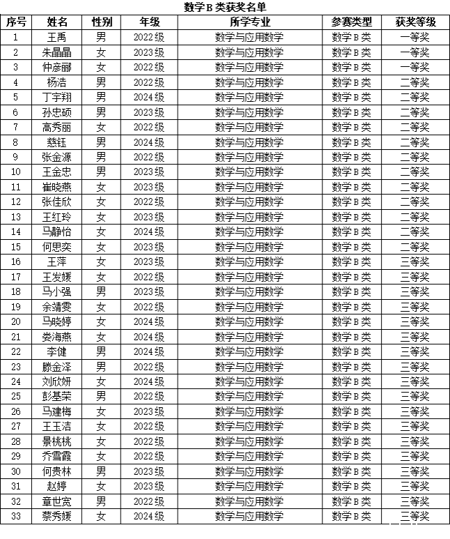 11月20日,第十七届全国大学生数学竞赛(甘肃赛区)成绩揭晓,我校参赛学生取得优异成绩,61名同学喜获佳绩。其中,数学专业B组获奖33项(一等奖3项,二等奖12项,三等奖18项),非数学专业A组获奖27项(一等奖2项,二等奖11项,三等奖14项),非数学专业B组获得三等奖1项。全国大学生数学竞赛是由中国数学学会主办的一项专门针对大学生设立的全国性高水平学科竞赛。该竞赛旨在激发大学生对数学学习的兴趣,提升数学素养与逻辑思维能力,...